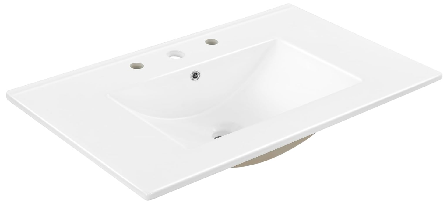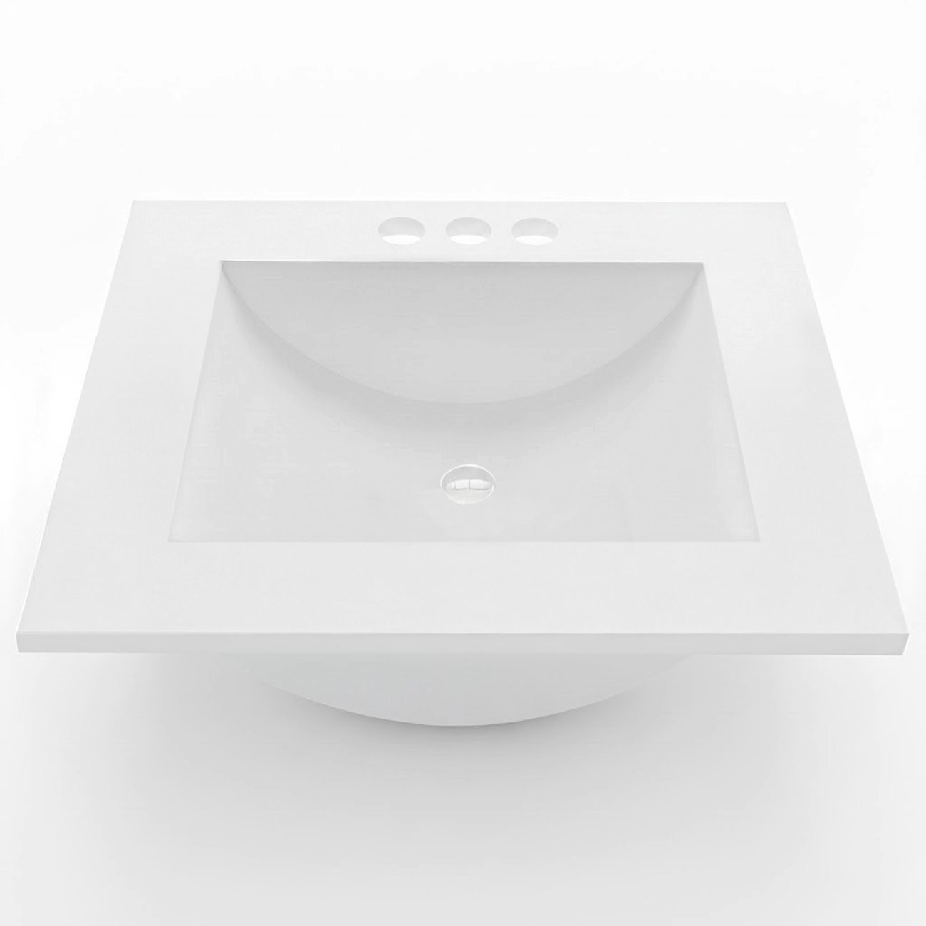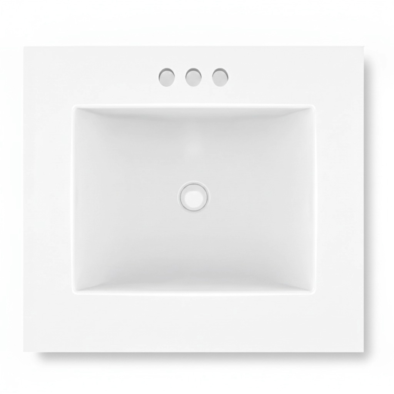 - The sink in this single-bowl vanity top has three pre-drilled faucet holes that allow for a 4-inch centerset mount faucet. The integrated sink features a non-drip edge and a safety overflow hole to avoid water overflow or spillage.