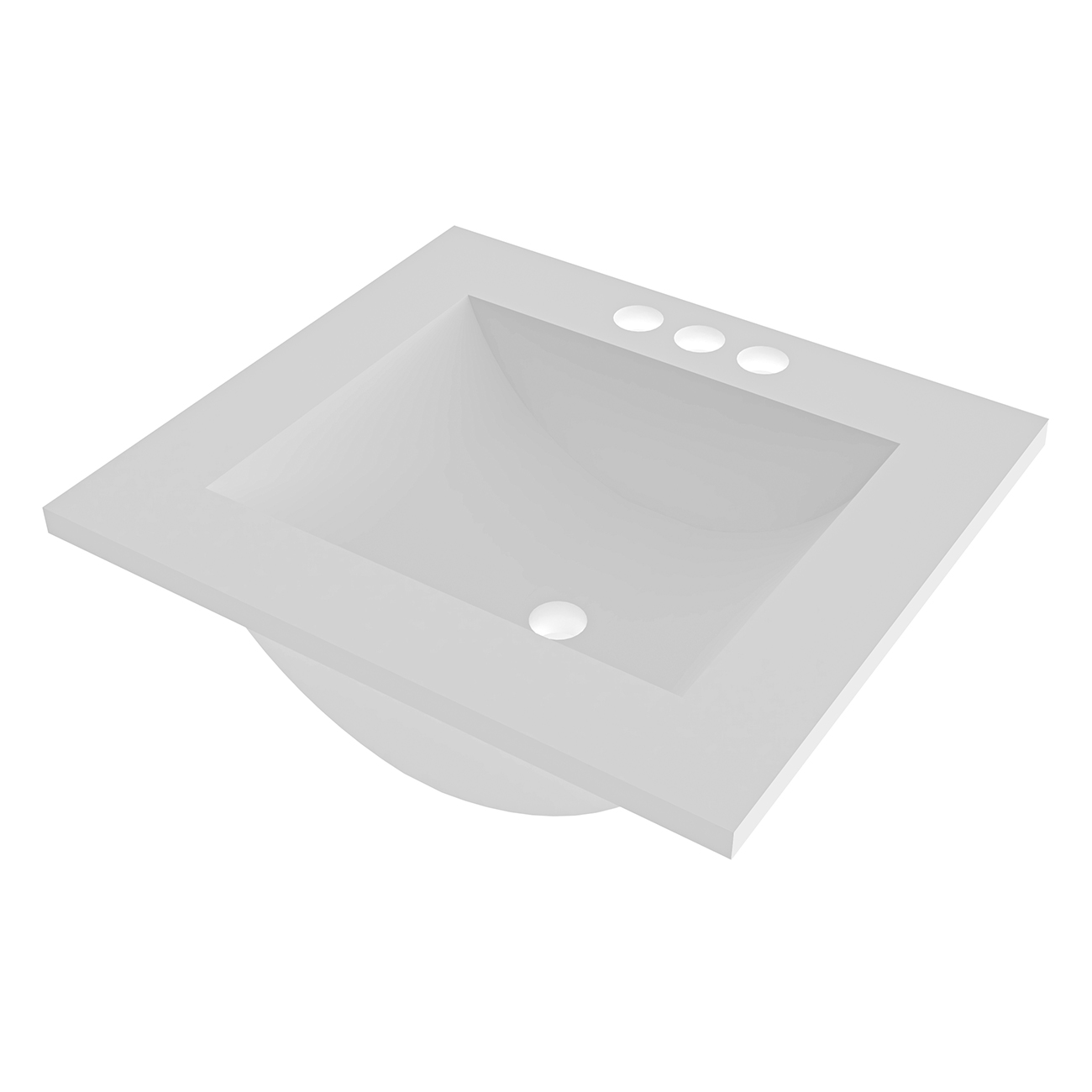 - Add a fresh, bright look to your bathroom with the Polystone Cultured Marble Vanity Top. This bathroom vanity top is 19-inches long for use on 18-inch vanity cabinets and features a contemporary super white / solid white finish. The rectangle bowl and square flat edge profile offer an updated yet modest look to blend seamlessly with any bathroom decor style.