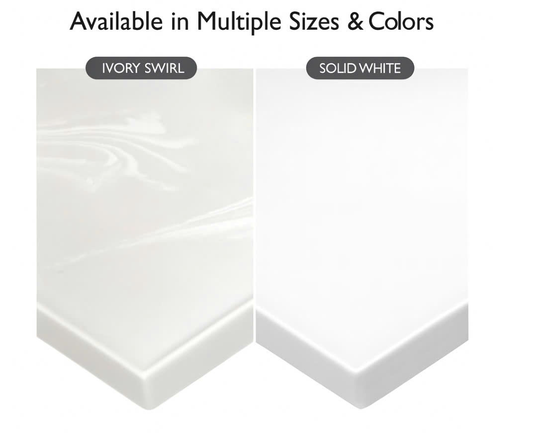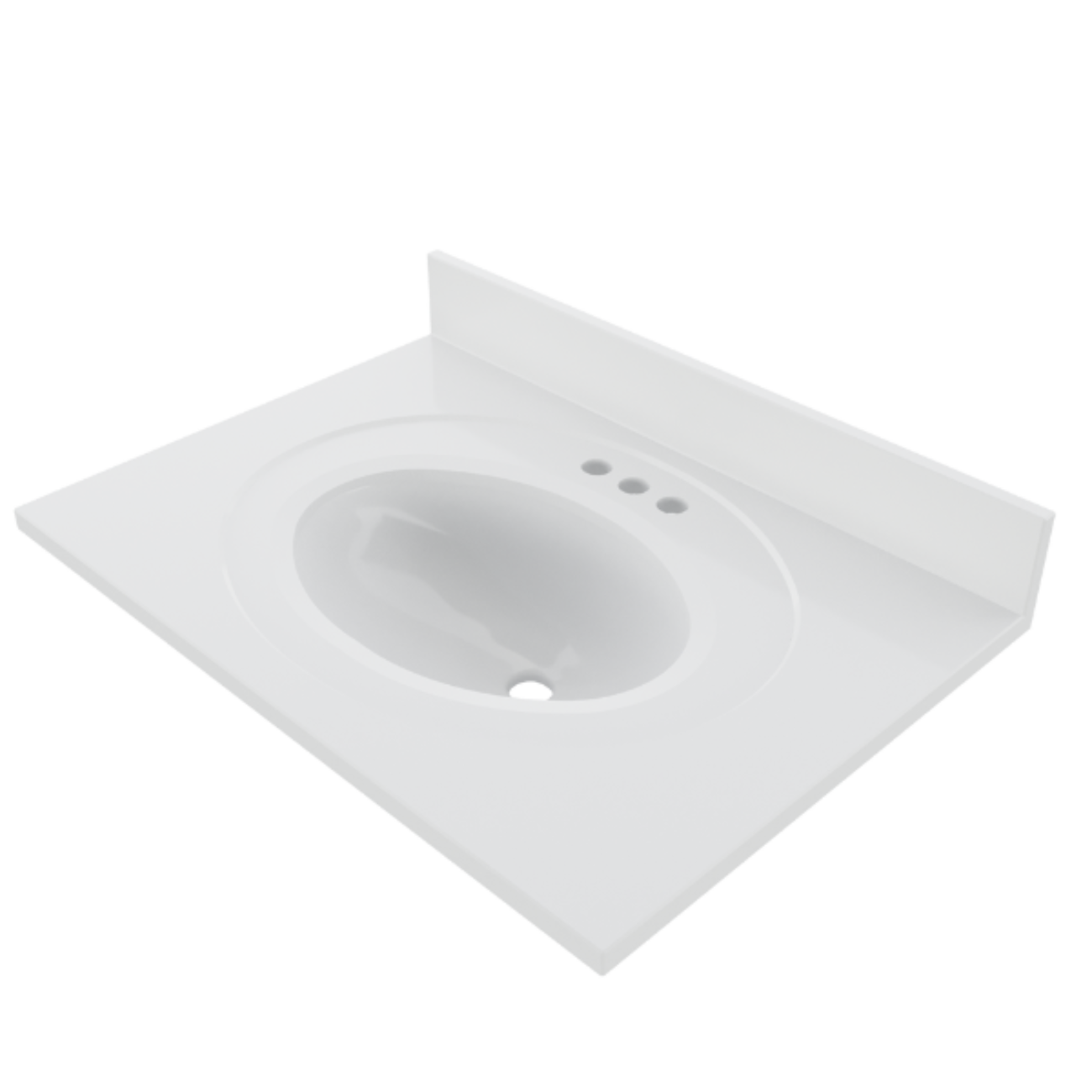 - Add a fresh, bright look to your bathroom with the Polystone Cultured Marble Vanity Top. This bathroom vanity top is 25-inches long for use on 24-inch vanity cabinets and features a contemporary super white / solid white finish. The oval bowl and square dripless edge profile offer an updated yet modest look to blend seamlessly with any bathroom decor style.