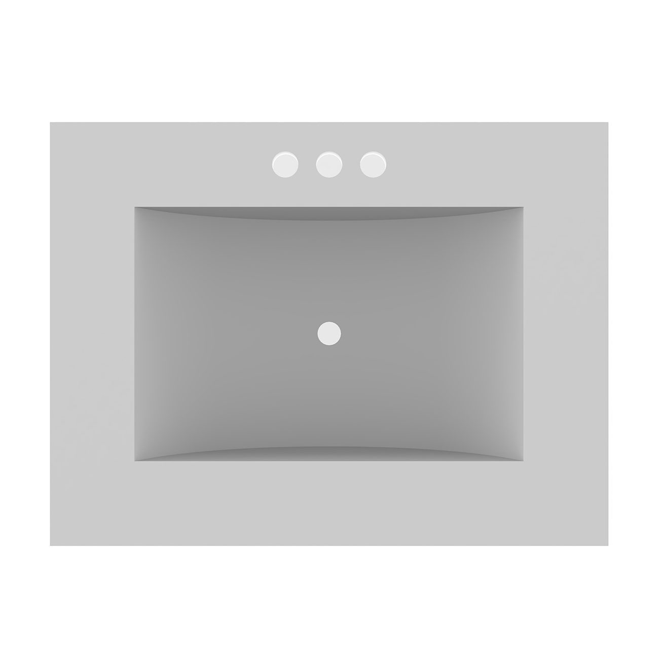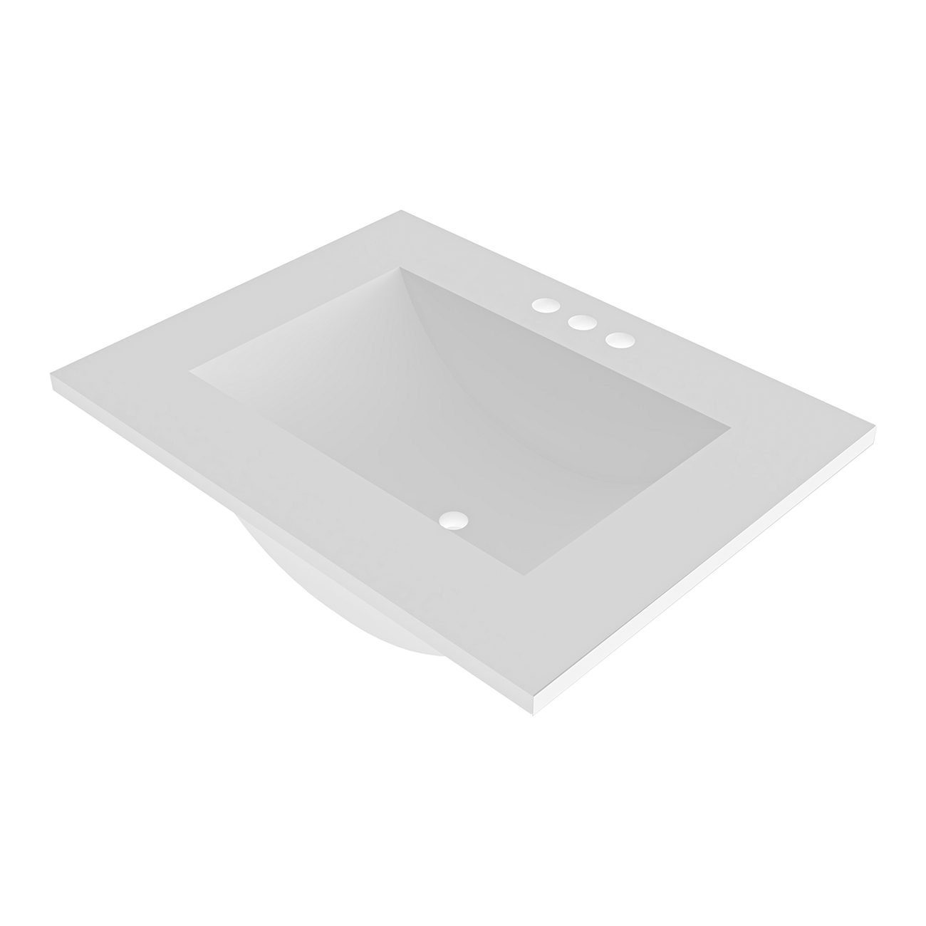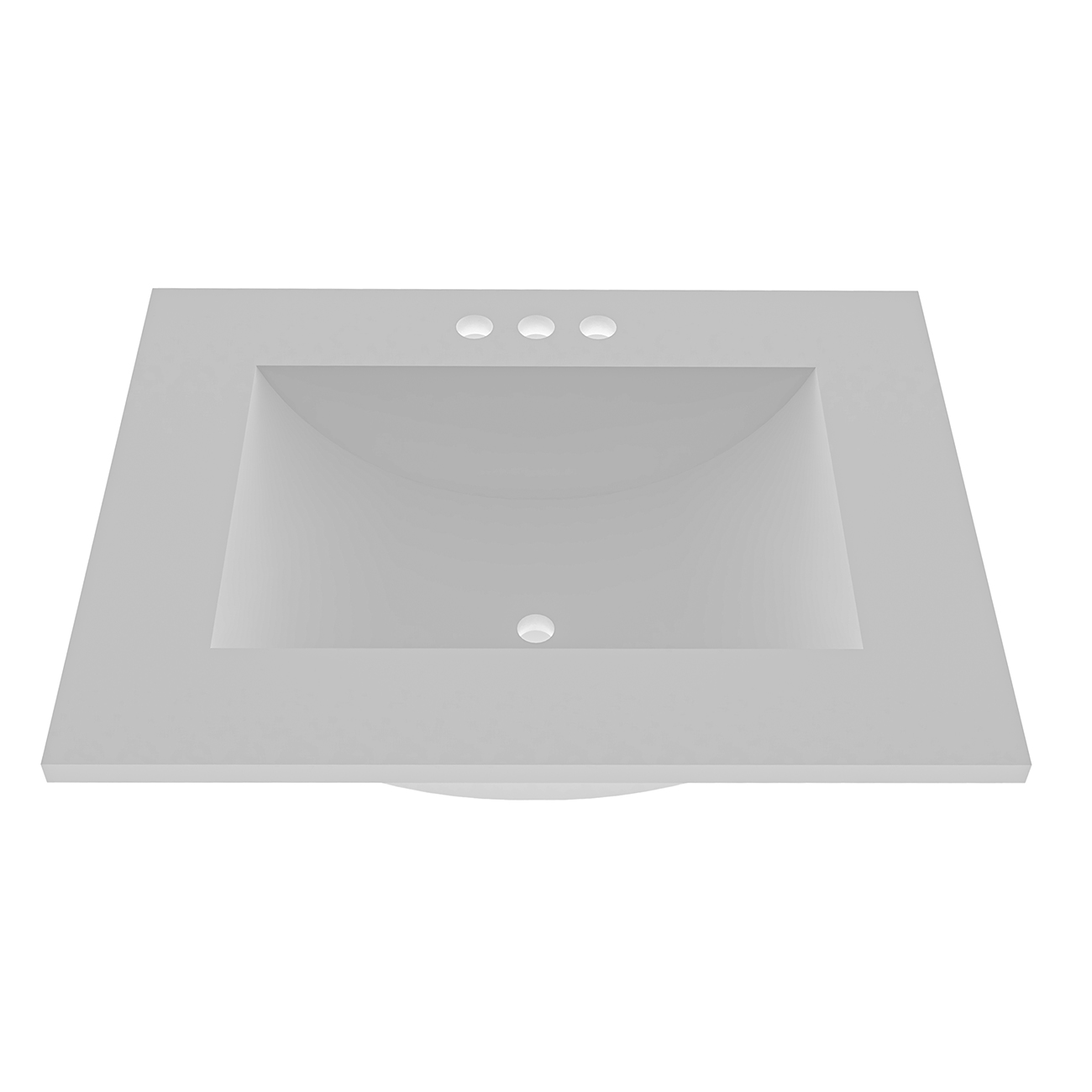 - Add a fresh, bright look to your bathroom with the Polystone Cultured Marble Vanity Top. This bathroom vanity top is 25-inches long for use on 24-inch vanity cabinets and features a contemporary super white / solid white finish. The rectangle bowl and square flat edge profile offer an updated yet modest look to blend seamlessly with any bathroom decor style.