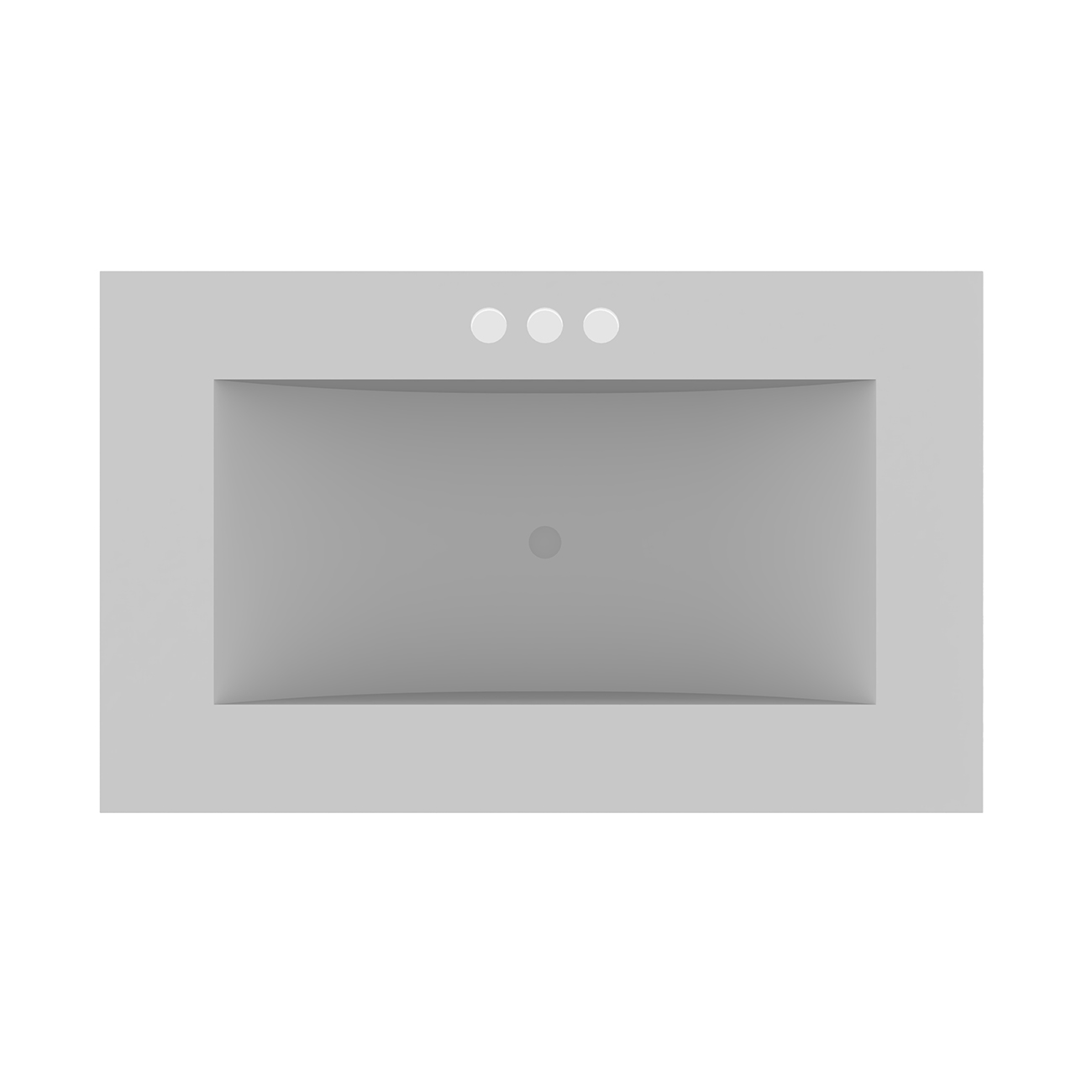 - Add a fresh, bright look to your bathroom with the Polystone Cultured Marble Vanity Top. This bathroom vanity top is 30-inches long for use on 30-inch vanity cabinets and features a contemporary super white / solid white finish. The rectangle bowl and square flat edge profile offer an updated yet modest look to blend seamlessly with any bathroom decor style.