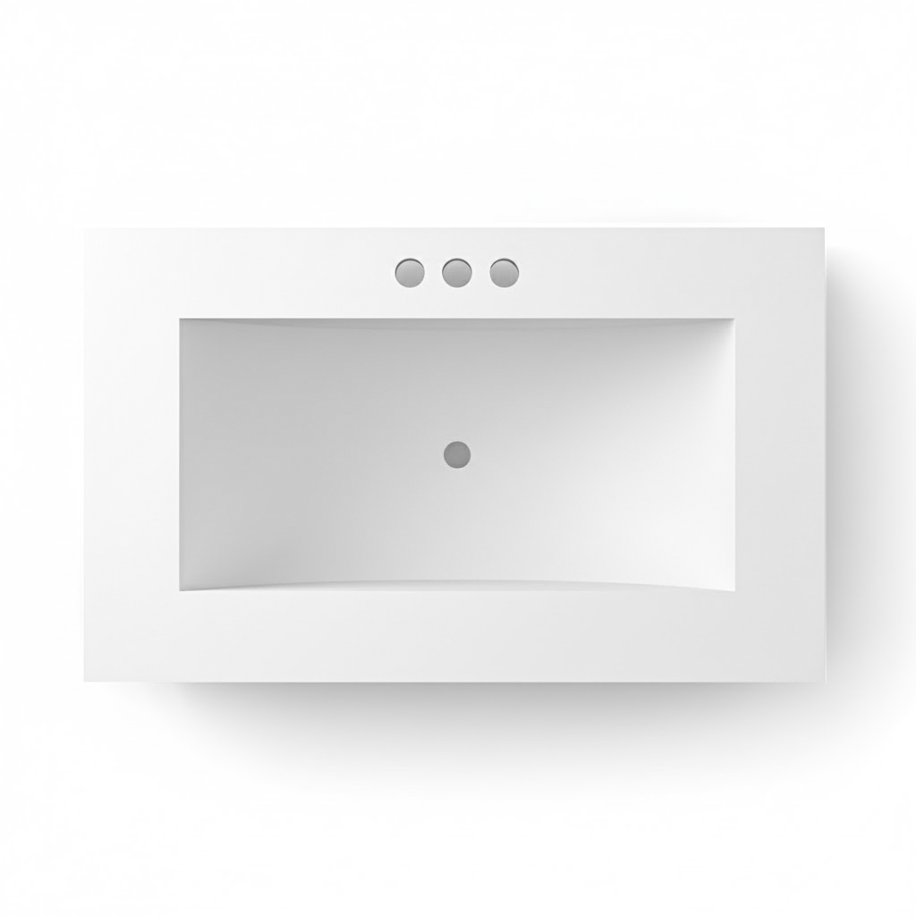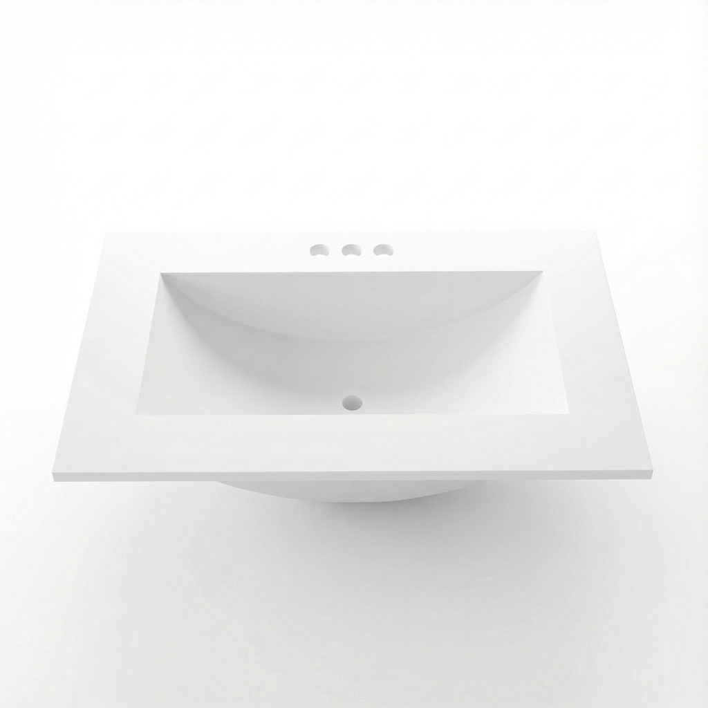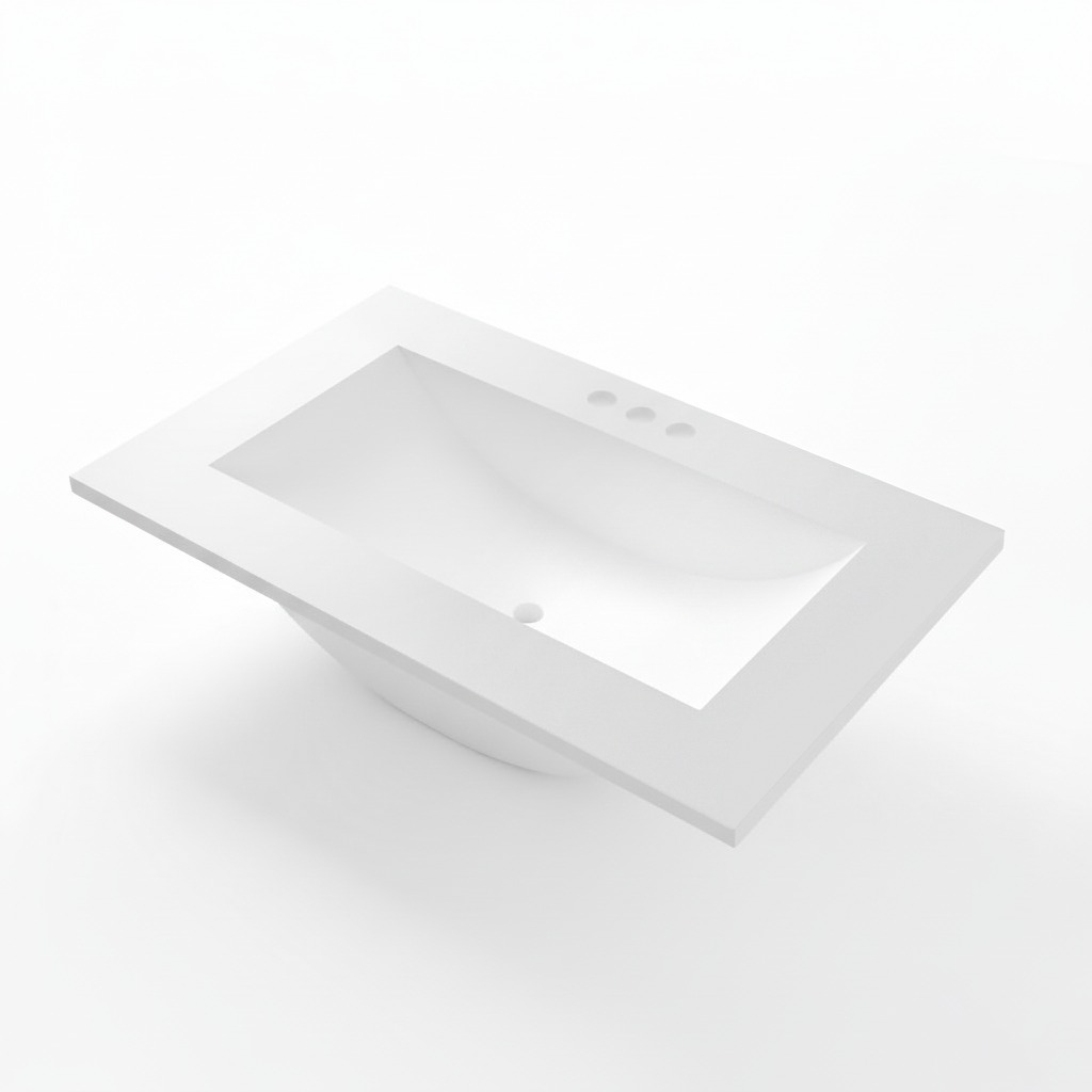 - Add a fresh, bright look to your bathroom with the Polystone Cultured Marble Vanity Top. This bathroom vanity top is 31-inches long for use on 30-inch vanity cabinets and features a contemporary super white / solid white finish. The rectangle bowl and square flat edge profile offer an updated yet modest look to blend seamlessly with any bathroom decor style.