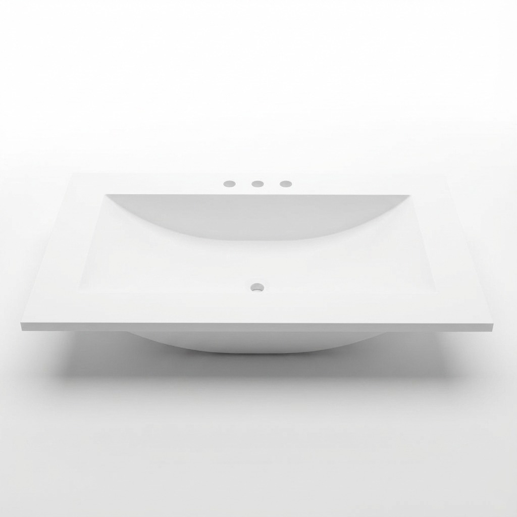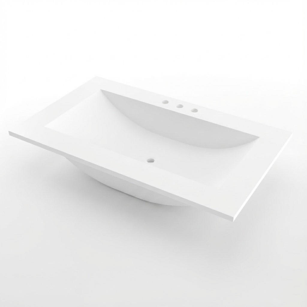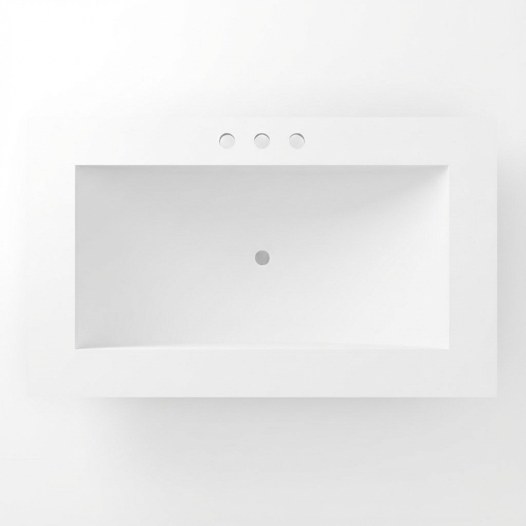 • The sink in this single-bowl vanity top has three pre-drilled faucet holes that allow for a 4-inch centerset mount faucet. The integrated sink features a non-drip edge and a safety overflow hole to avoid water overflow or spillage.